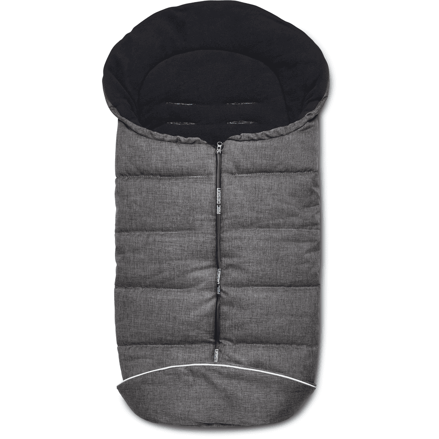 La chancelière s’adapte aux sangles de la poussette et est utilisable sur