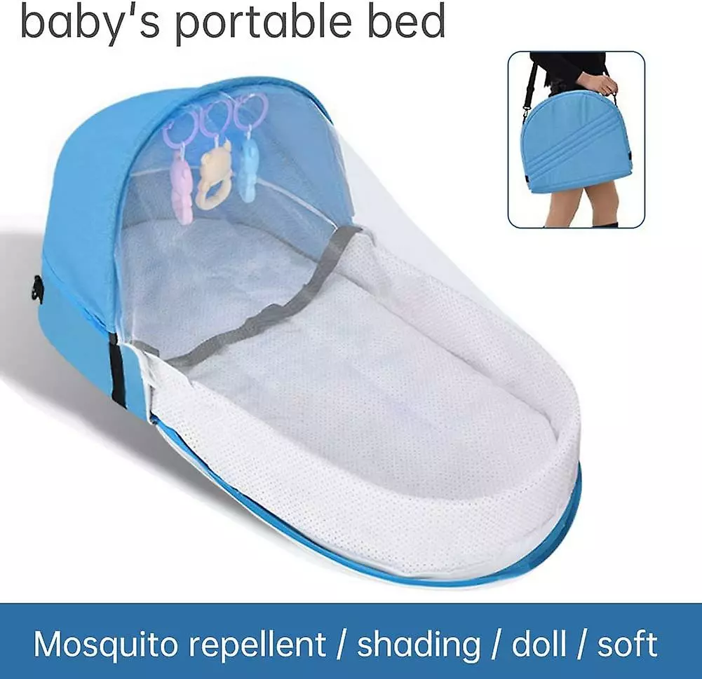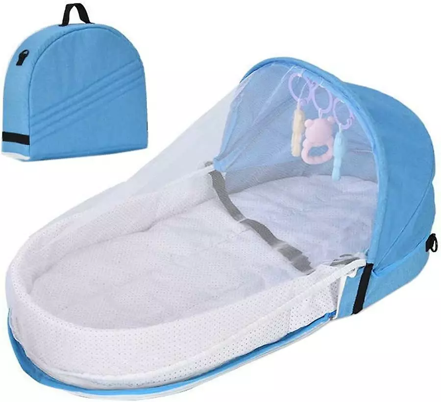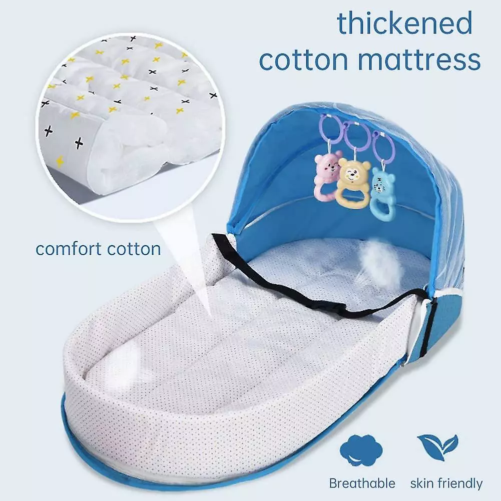 Augro Lit De Voyage, Lit Pliable Avec Moustiquaire, Coton Moustiquaire Respirant Mosquito Répulsif Portable, Bleu