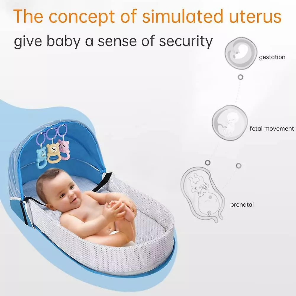 Matériau sûr: Fait de lin et de coton de haute qualité, pas d’ingrédients nocifs, toucher confortable, doux, respirant et non étouffant, bien cousu, résistant à la déchirure, sans danger pour les bébés. Lit pliant avec moustiquaire: Convient à tous les nouveau-nés, avec un design bionique qui imite l’utérus confortable, offrant au bébé un environnement confortable. Il y a de jolis jouets dans le berceau avec lesquels votre bébé peut jouer. Multifonction: Ce lit de voyage portable pour bébé peut non seulement être utilisé comme berceau, mais peut également être plié dans un sac de rangement pour répondre aux besoins des mères. Dimensions: 92cm x 45cm x 14cm. Le berceau portable est parfait pour le lit, le canapé, le parc, les voyages et plus encore. Aussi le meilleur cadeau pour les bébés. Lavable: Le lit de voyage bionique confortable est amovible, facile à nettoyer, pas facile à décolorer, facile à sécher dans un endroit ventilé et réutilisable.