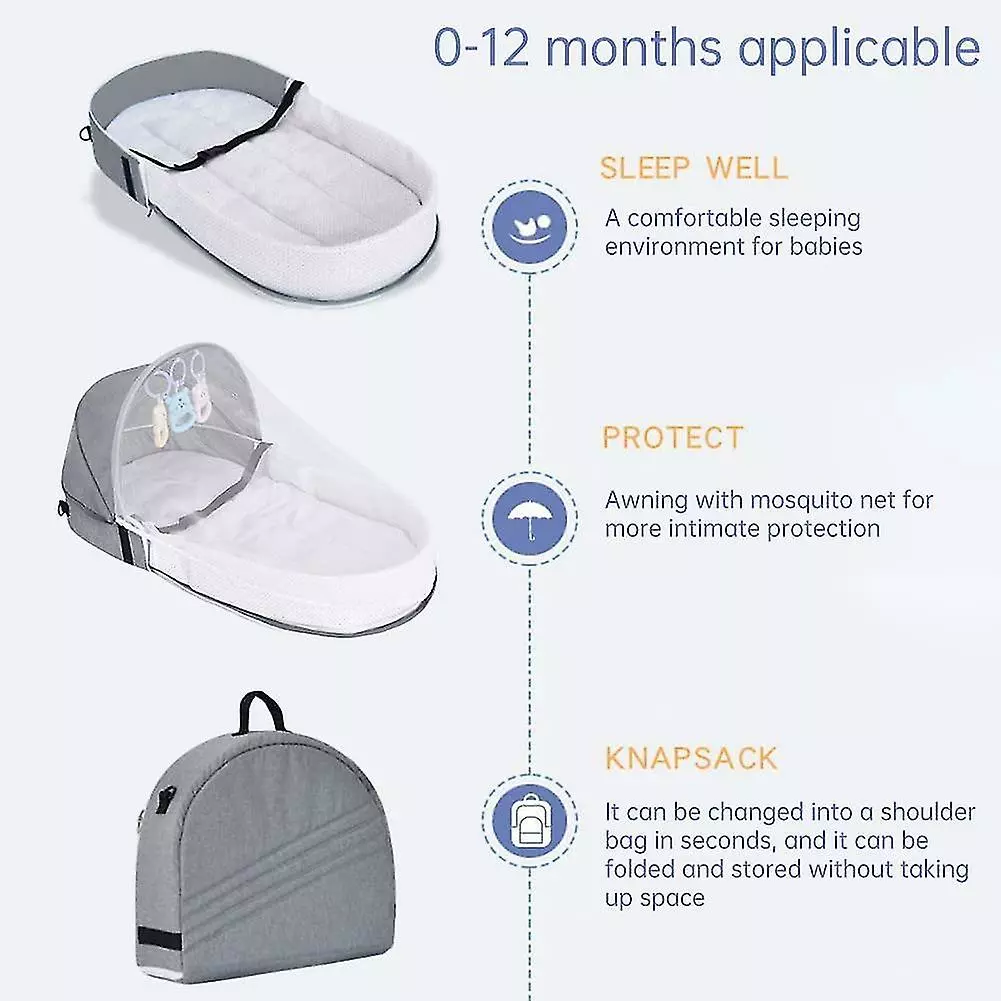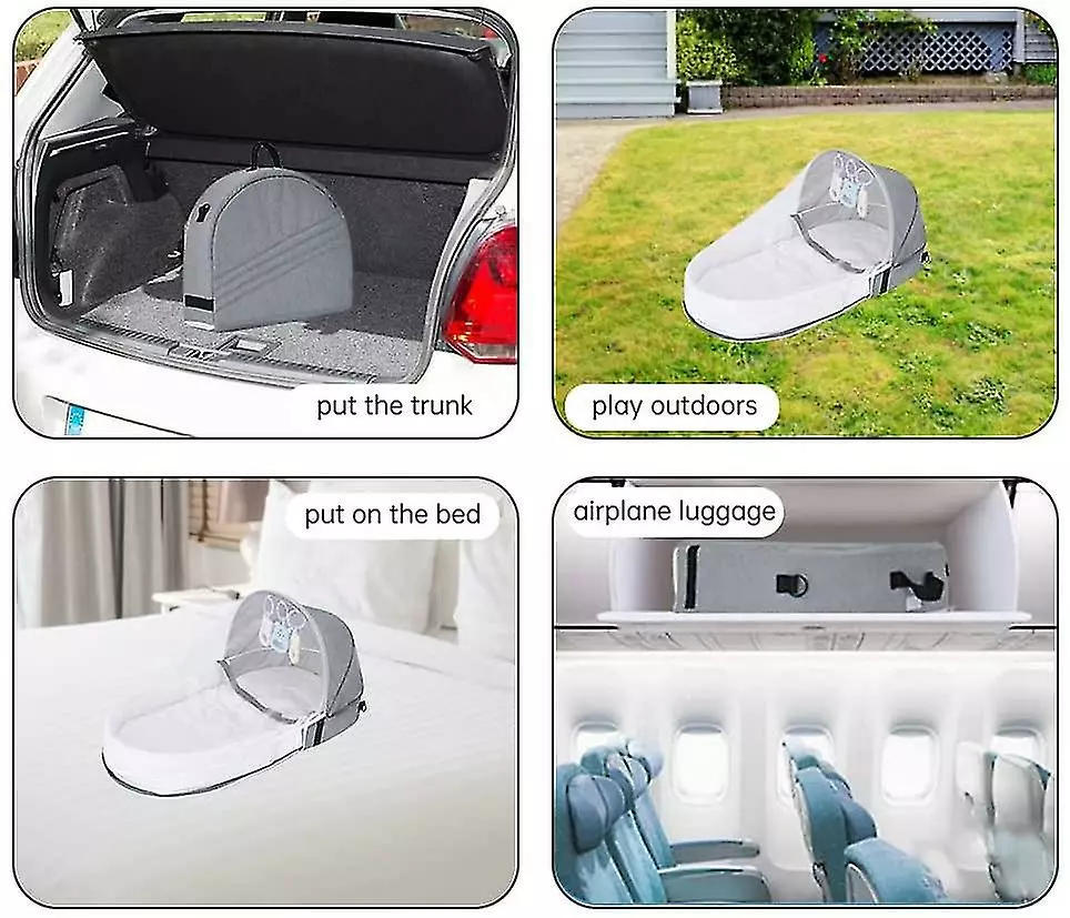 Unbranded Lit De Voyage Pour Bébé Avec Moustiquaire, Moustiquaire Pliable Coton Mignon Répulsif Contre Les Moustiques Lit Portable (gris)